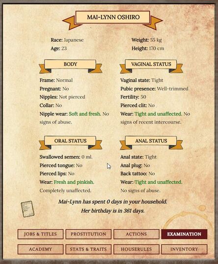 The absence of her mother, and her father's mounting problems with a Raikan street gang, eventually impoverished the father-daughter duo, forcing Mai-Lynn into servitude. She worked her first years as a domestic servant, but chose to sign a slave contract in order to save her father's house from becoming auctioned off due to his spiraling debts.