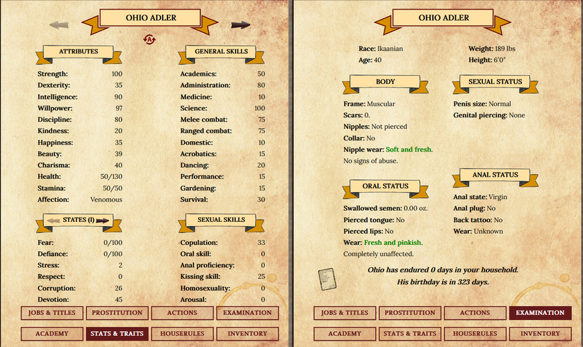 Ohio has very high scores in Strength, Administration, Science, Willpower, Discipline, Ranged, and Melee. But not in Survival, despite being a famed "hunter-survivalist".