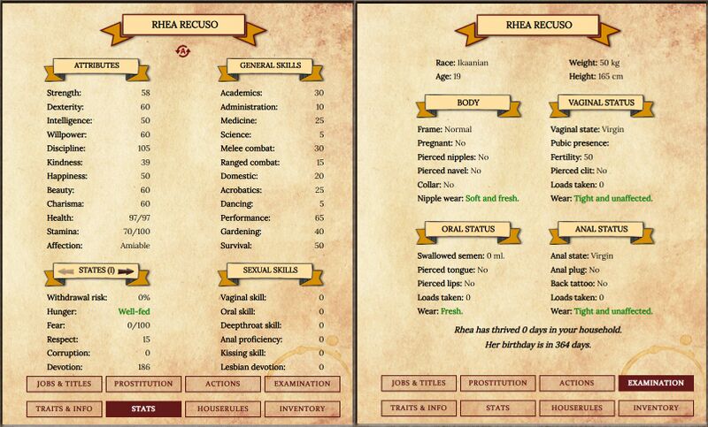 Rhea Recuso is a a fervent, catholic raider-crusader girl, sentenced to death by beheading by The Church of The Two Moons, but who could be saved from this fate and maybe added to the MC's household. Rhea's unshakeable christian faith gives her several unusual special abilities.