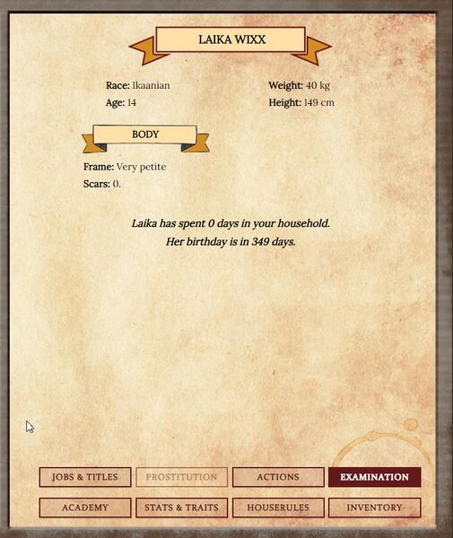 Laika's examination page (kid)