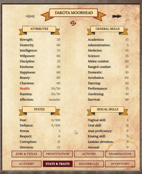 Dakota's stats page