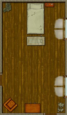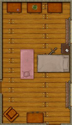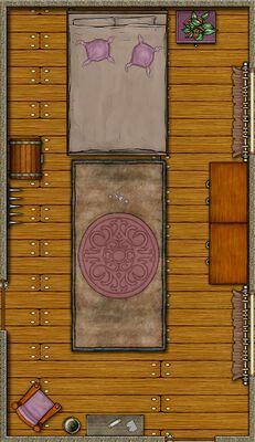 "A simple but cozy room with a clean single bed, comfortable pillows, and decent furniture. There's a nice, thick carpet on the floor, offering a perfect place for slaves to sleep. Flowing linen curtains add a feeling of sophistication and tranquility."